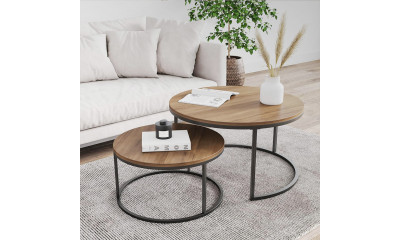 طقم طاولات دائرية 5 قطع - لمسة عصرية لمنزلك أضيفي لمسة من الأناقة العصرية إلى ديكور منزلك مع طقم الطاولات الدائرية المكون من 5 قطع خشبية على قاعدة معدنية. يجمع هذا الطقم بين التصميم العصري والوظيفة العملية، حيث يمكن استخدام الطاولات معًا كطقم متناسق أو توزيعها في أكثر من زاوية لتلبية احتياجاتك اليو..