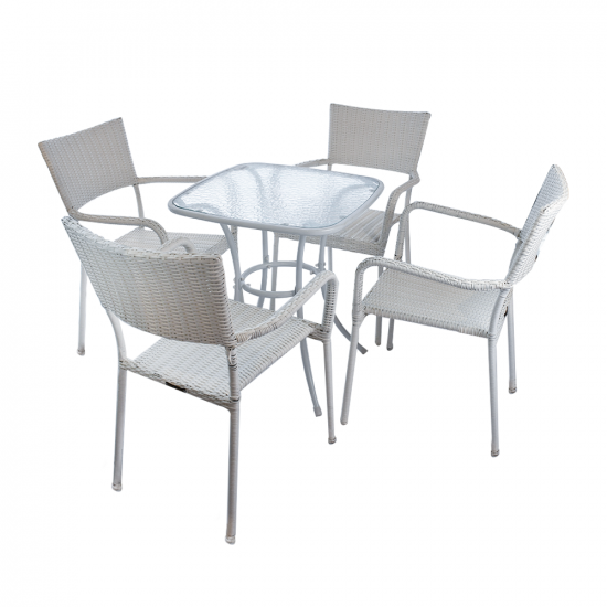 4 كراسي أنيقة بتصميم متناسق مع الجلسة، يتميزان بتنجيد ناعم ومساند جانبية مريحة، يوفران دعم مثالي للظهر والذراعين. الهيكل المتين يضمن ثبات عالي للاستخدام الخارجي، ما يجعل الجلوس تجربة مريحة وعملية.